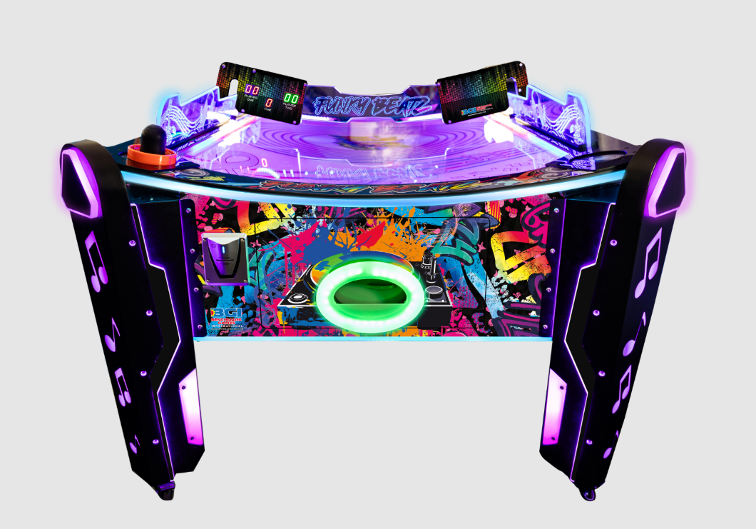 The Funky Beatz Curved Air Hockey Table by Benchmark Games delivers a one-of-a-kind arcade experience where music and competition come together. Built on a uniquely curved table design, this innovative twist on classic air hockey adds a whole new level of excitement to every match. Players are immersed in an energetic atmosphere filled with rhythm-driven gameplay, vibrant visuals, and dynamic lighting effects. Each game feels like a performance, with an eclectic soundtrack setting the stage for fast-paced showdowns. Designed for entertainment spaces that want something truly different, Funky Beatz stands out as an unforgettable attraction. Whether for home game rooms or commercial venues, it offers nonstop action, style, and a beat you can play to.