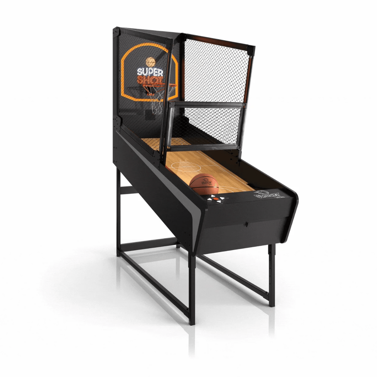 SuperShot® Home Arcade Basketball brings fast-paced, arcade-style hoops into your home with a premium look and feel. Designed with an adjustable height and length, this game is perfect for players of all ages and skill levels, from kids to competitive adults. A custom LED-lit backboard, chainlink-style hoop, and immersive lighting effects create an authentic arcade experience that stands out in any game room. With nine unique game modes and support for up to eight players, SuperShot keeps competition fresh and exciting every time you play. Built with quality craftsmanship and thoughtful design, it delivers both performance and visual impact. Handcrafted in the USA, SuperShot is a statement piece made for serious fun.