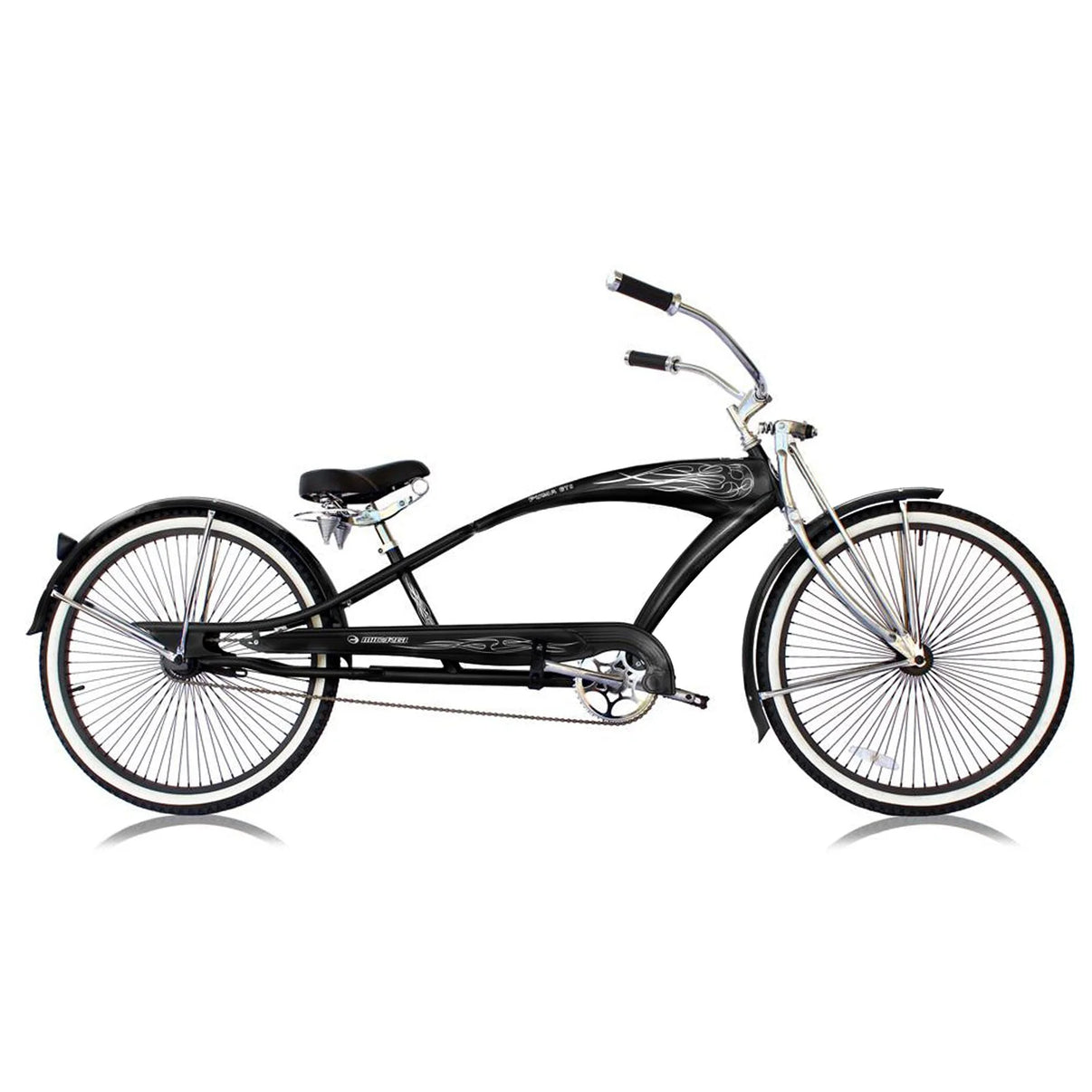 The Micargi Puma GTS 26″ Stretch Cruiser Bicycle is built for riders who want aggressive style paired with relaxed, confident cruising. Designed as a bold stretch cruiser, it features an elongated frame that delivers a laid-back riding position and unmistakable street presence. A chrome springer fork adds classic lowrider flair while helping smooth out bumps along the ride. The single-speed drivetrain keeps things simple and low maintenance, making it ideal for casual cruising on flat terrain. A rear coaster brake provides intuitive stopping power without cluttering the handlebars with cables. With high spoke-count wheels and eye-catching graphics, the Puma GTS is made to turn heads wherever it rolls.