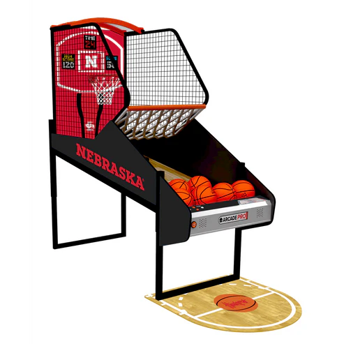 Bring the energy of college basketball home with the NCAA College Hoops Team Edition arcade shooting game. Featuring bold officially licensed collegiate graphics, fast-paced arcade gameplay, and premium construction, this machine captures the spirit of campus arenas and student sections nationwide. Choose from 50 NCAA programs and personalize your game even further with optional upgrades like a branded team floor mat and ball size selection. Proudly handcrafted in the USA, this is the ultimate centerpiece for fan caves, rec rooms, and home arcades.