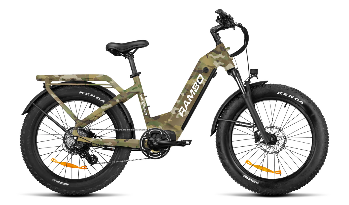 The Rambo Savage 2.0 is a legendary entry-level electric bike built for reliability, performance, and versatility. Perfect for hunters, trail riders, and outdoor enthusiasts, this e-bike combines high torque, durable construction, and a quiet, efficient hub motor for a smooth, powerful ride. With a waterproof LCD display, adjustable stem, and anti-puncture tires, the Savage 2.0 keeps you in control across diverse terrains. Its lightweight 6061 T6 aluminum frame and integrated rear rack make it easy to handle and carry gear, while the thumb throttle and adjustable power settings give you precise control on every ride. Backed by Rambo’s proven engineering and US-based lifetime support, this bike delivers long-term value and dependable performance.
