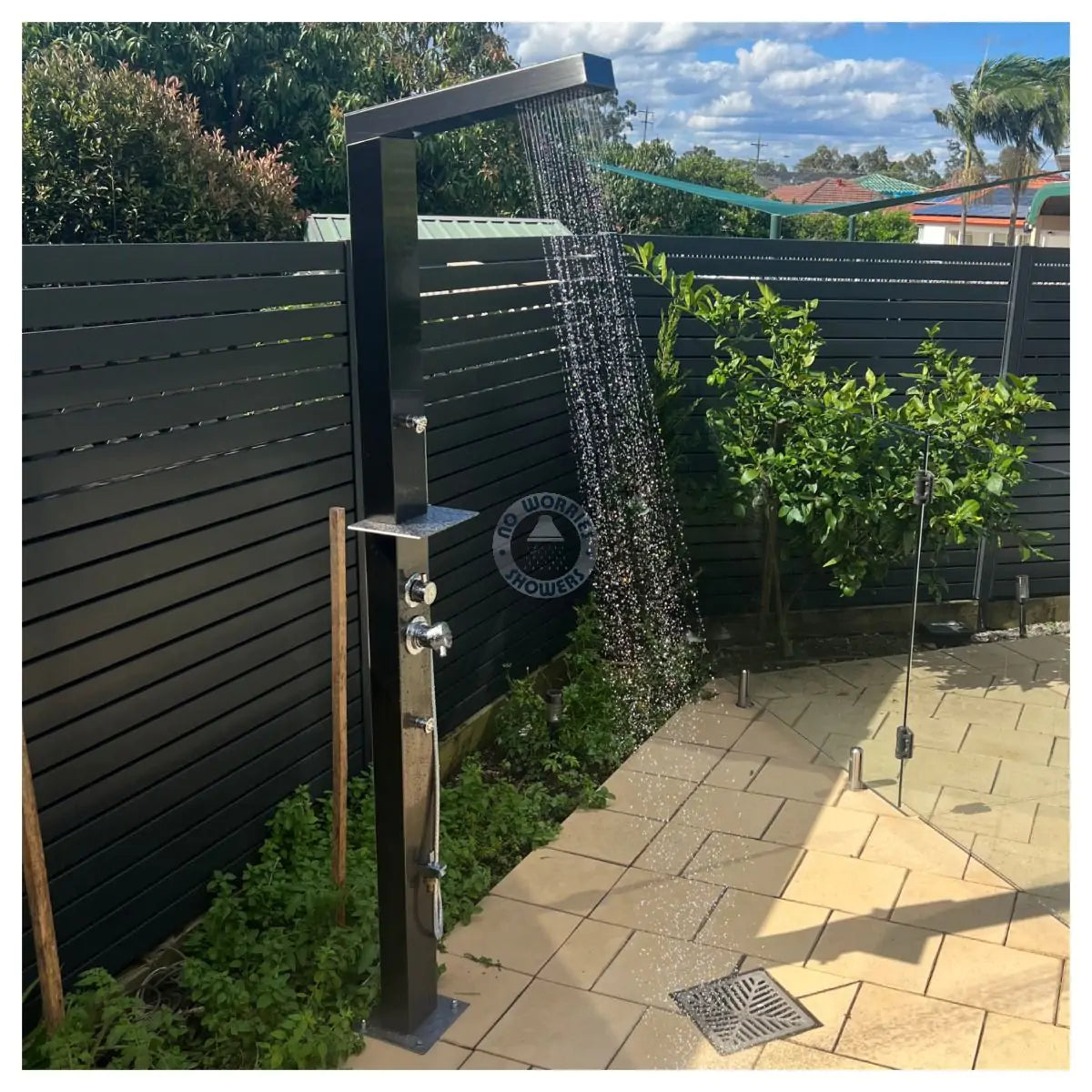 The No Worries Showers Reno Black ADA Outdoor Pool Shower is a professional-grade rinse-off solution designed for safe and accessible use. Constructed from 316L marine-grade stainless steel, it delivers superior resistance to corrosion and rust, making it ideal for pools, spas, and coastal environments. Its ADA-compliant design ensures safe and convenient access for individuals with mobility needs. The sleek black finish adds a modern, sophisticated look to any outdoor space. CUPC registration ensures compliance with plumbing safety and performance standards. Built for both residential and commercial settings, this shower offers consistent water flow, long-term durability, and minimal maintenance requirements.