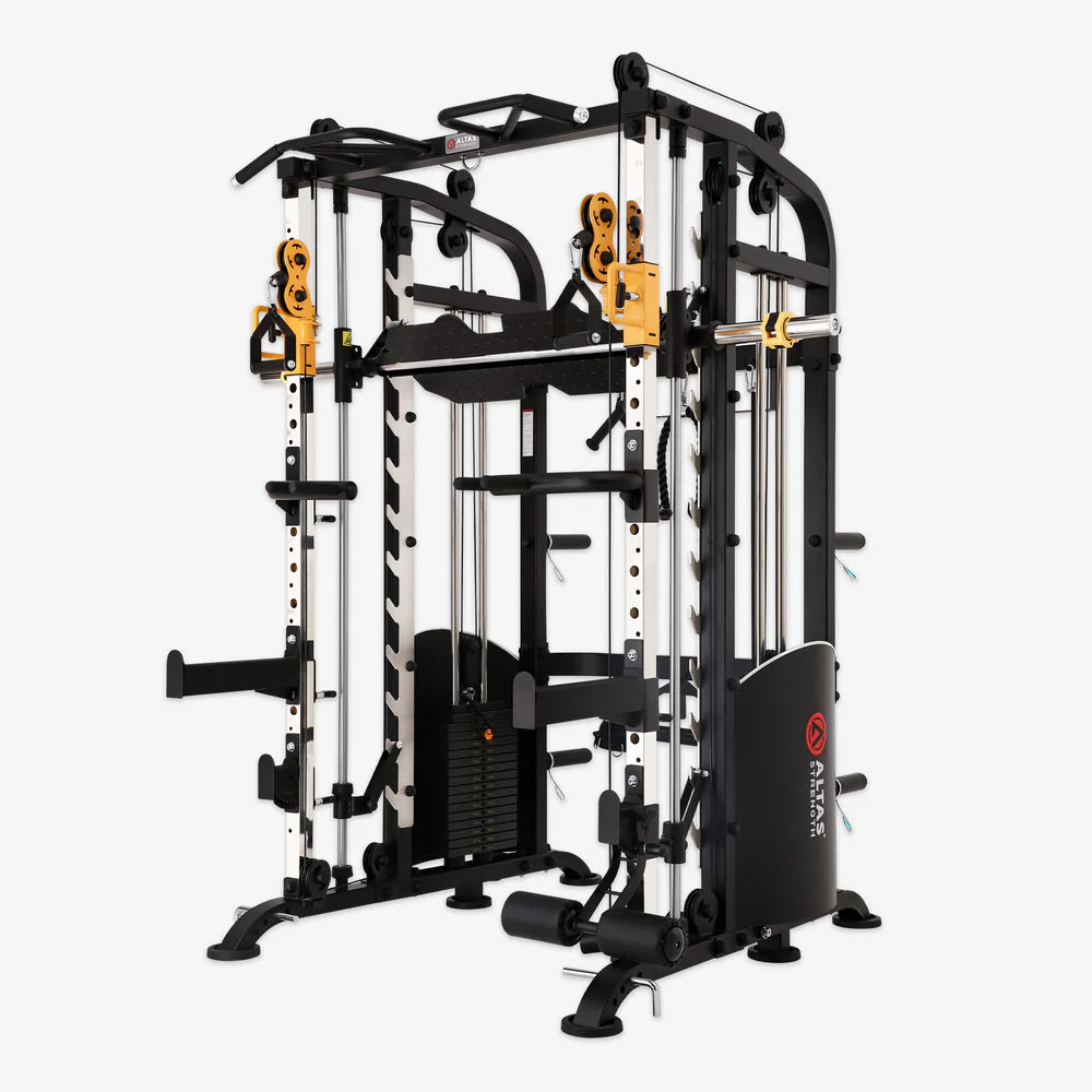 The Altas Strength AL-M810 Smith Machine is a versatile, light-commercial home gym solution built for safe and effective strength training. Its fixed vertical bar path ensures controlled lifting for squats, presses, and rows, while ergonomic handles provide comfort during workouts. The heavy-duty steel frame supports high-intensity exercises and long-term durability. Smooth low-friction bearings allow quiet, consistent bar movement, making each lift stable and precise. Compact and thoughtfully designed, it fits well in home gyms without compromising functionality. Easy assembly with pre-drilled components makes setup simple and stress-free. The AL-M810 delivers professional-grade performance and reliability for full-body training at home.