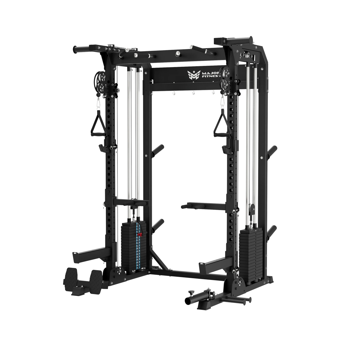 The Major Fitness F22 Pro All-In-One Home Gym Power Rack is a versatile strength training station designed for home gyms, personal trainers, and fitness enthusiasts. It combines a heavy-duty power rack with multiple functional attachments, allowing a full range of exercises including squats, presses, pull-ups, and cable movements. Adjustable safety bars and J-hooks ensure secure and customizable setups for all user heights and strength levels. The dual cable pulley system and resistance attachments enable targeted training for all major muscle groups. Durable steel construction provides stability and long-term reliability, while integrated storage keeps accessories organized and accessible. Compact yet feature-rich, the F22 Pro offers professional-grade functionality in a home-friendly footprint. With multiple exercise options and premium build quality, it’s ideal for comprehensive strength and functional training.