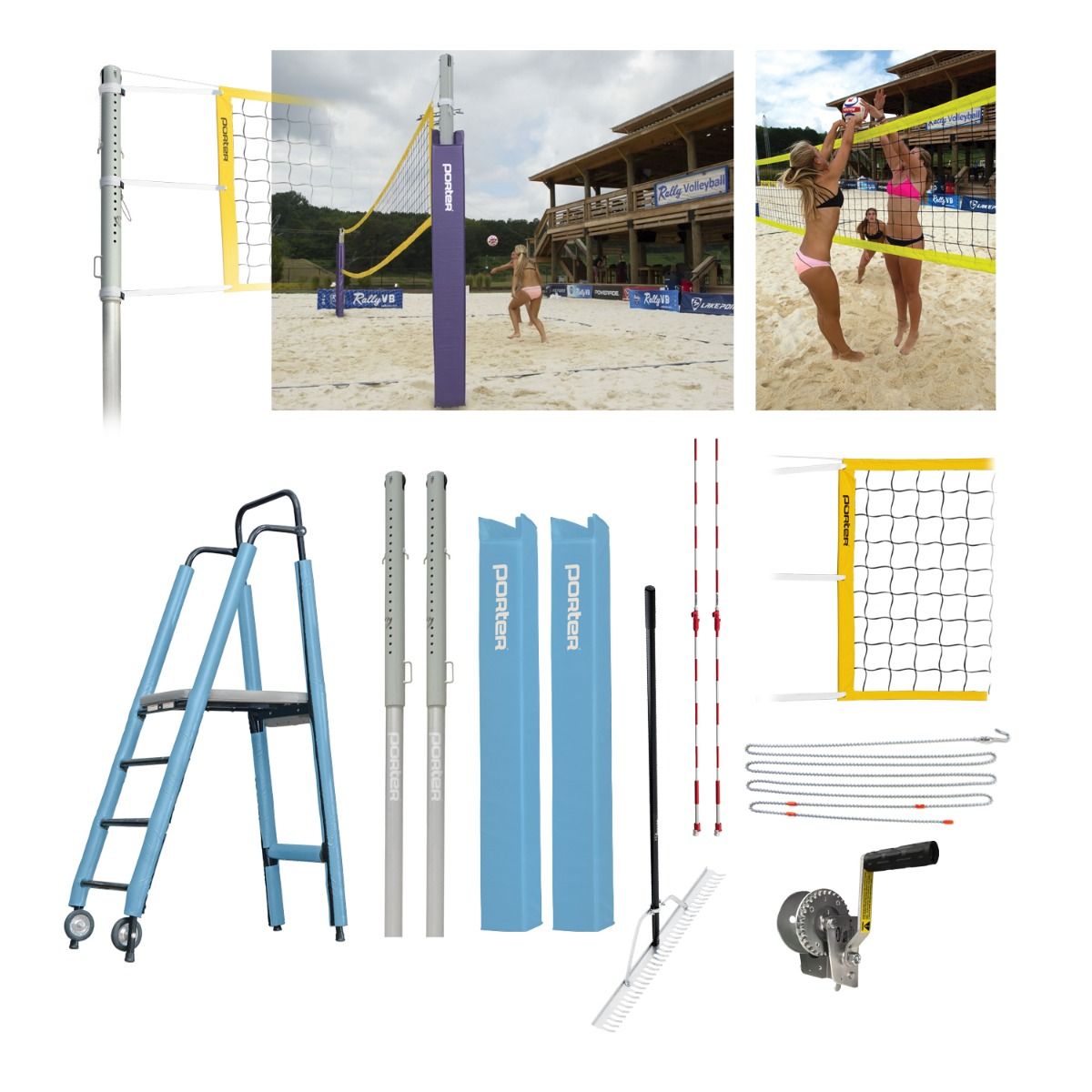 Built for elite outdoor volleyball, the Porter Powr-Sand Competition Plus Package delivers a complete, competition-ready system for sand facilities. The Powr-Sand aluminum telescoping standards are engineered for year-round outdoor durability, smooth height adjustments, and lightweight maneuverability. Meets FIVB, NCAA, and NFHS requirements for top-level play.