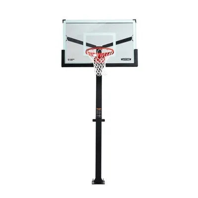 This hoop brings professional-quality play to your driveway with a tempered glass backboard, ultra-stable bolt-down base, and smooth Mammoth Lift adjustment. The one-piece steel pole eliminates the shake common in cheaper systems, and the tempered glass provides the crisp rebound competitive players expect. It’s the perfect choice for families who want lasting durability, premium performance, and serious home-court capability.