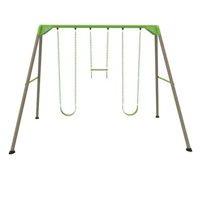 The Lifetime Metal Swing Set gives kids a safe, exciting, and classic outdoor play experience right in your backyard. Children can soar on the two belt swings, practice acrobatics on the trapeze bar, and enjoy imaginative adventures every time they play. Built with 3-inch diameter powder-coated steel, this set is weather-resistant, rust-resistant, and UV-protected, ensuring long-lasting durability with virtually no maintenance. Safety is built into every detail with rubber-coated swing chains, rounded edges, and smooth plastic caps on corners to prevent bumps or pinches. With a free-standing design that requires no cement and compliance with Playground Performance and Safety Standards, the Lifetime Metal Swing Set is a reliable, sturdy, and family-friendly choice.