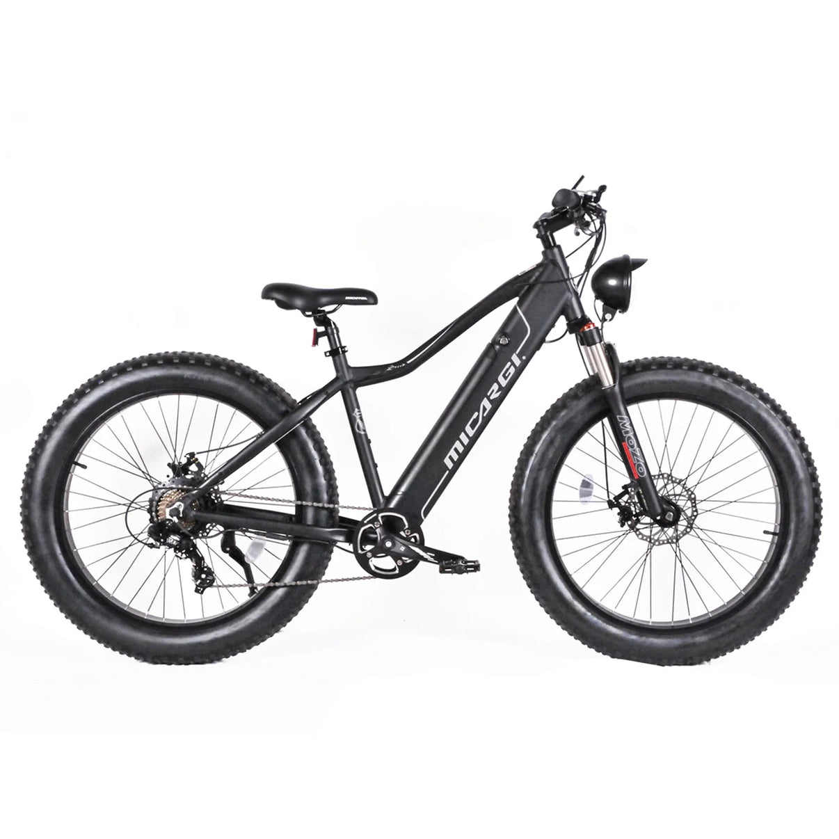 The Micargi Steed Electric Mountain Bicycle is built for riders who want power, stability, and confidence across rough terrain and daily rides. Designed as a rugged fat tire electric bike, it delivers strong electric assistance while maintaining a comfortable, controlled feel. A high-output electric hub motor provides smooth acceleration for trails, pavement, and commutes alike. Wide fat tires improve traction and absorb bumps, making uneven surfaces easier to handle. A Shimano 7-speed drivetrain allows you to shift efficiently for hills and changing terrain. With pedal assist and throttle capability, the Steed is ready for adventure, errands, and everyday riding.