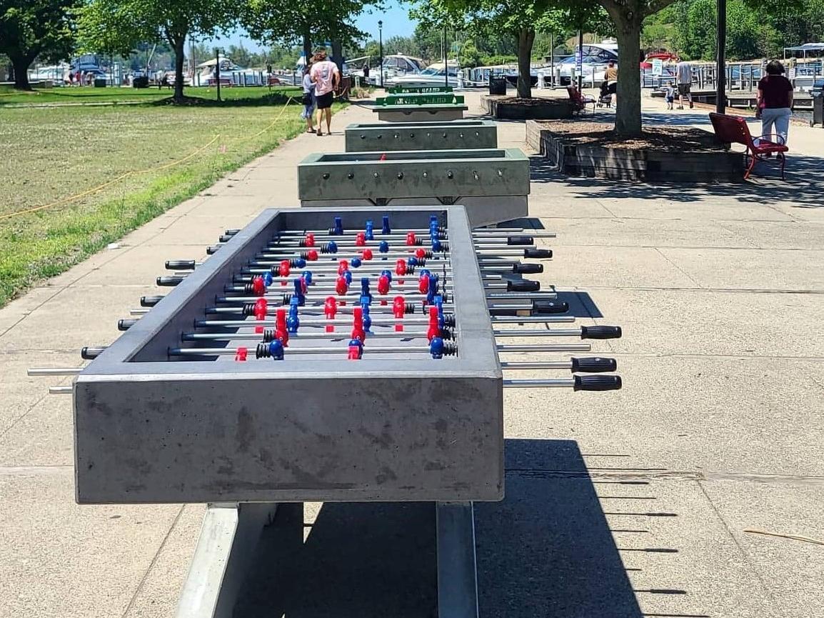 The Double Foosball Table is perfect for venues that want to create a social and competitive hub. Its oversized design encourages group play and makes every match memorable. Constructed with concrete and stainless steel rods, it withstands heavy use and all weather conditions while maintaining a polished, professional look. Trusted by schools, parks, and entertainment venues nationwide, this table combines fun, durability, and visual appeal for decades of dependable outdoor recreation.
